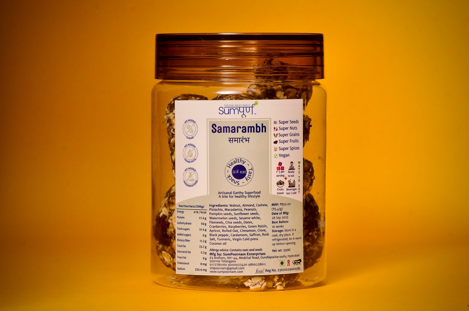 Samarambh—a blend of nature’s finest, a symphony for your taste buds. Order yours today and savour the essence of pure superfood magic! 🌟🌱✨